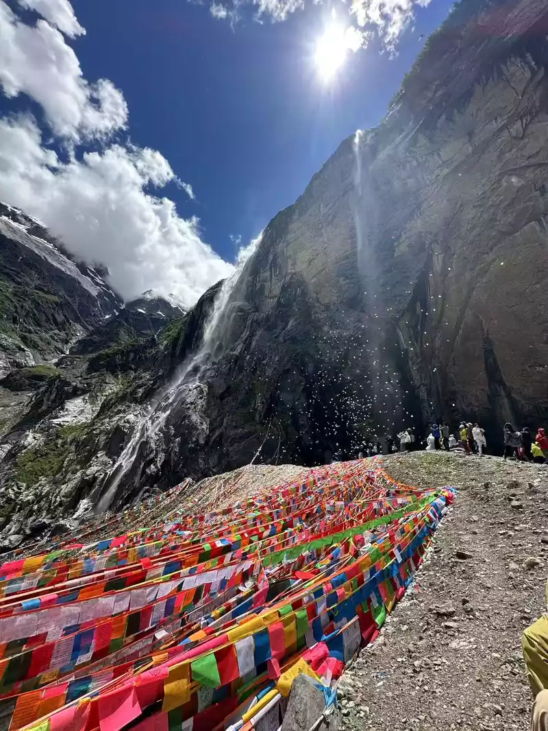 Final Sprint: The climb from the supply station to the summit of Shenpu Waterfall is approximately 2 kilometers. While the climb is physically demanding, it offers breathtaking views of the waterfall. Upon arrival, hang prayer flags and pray.