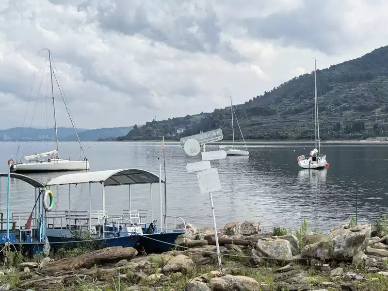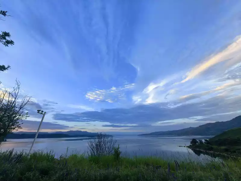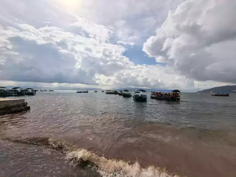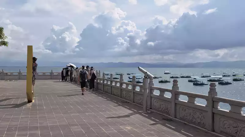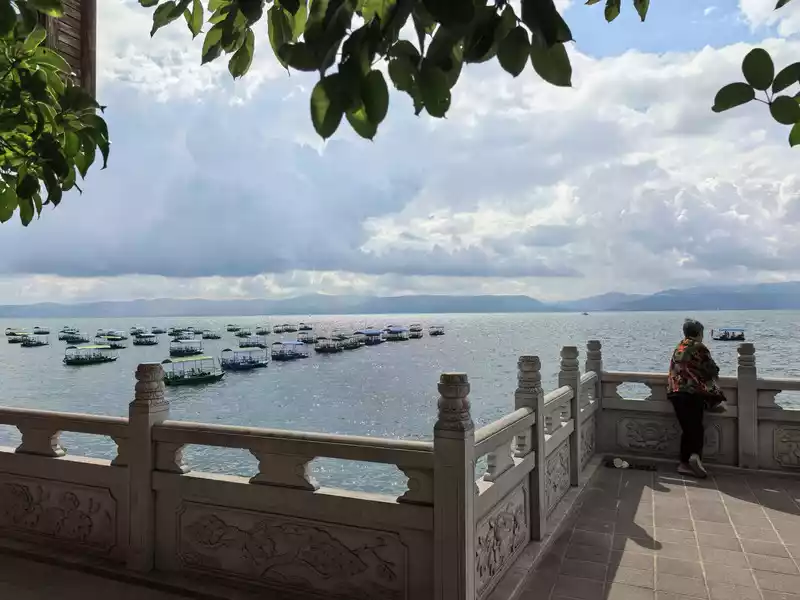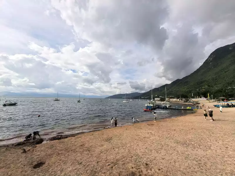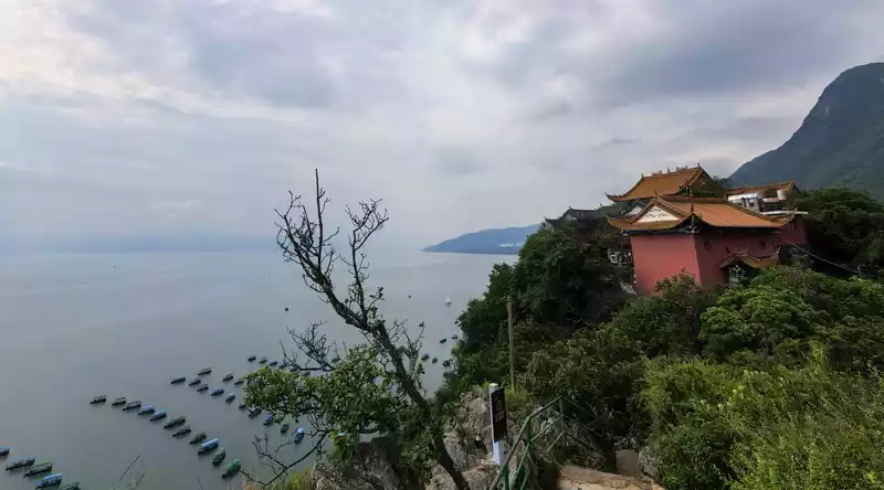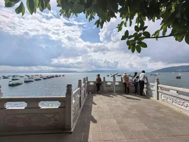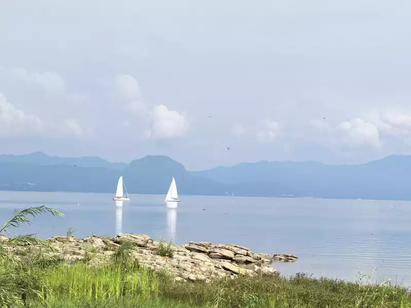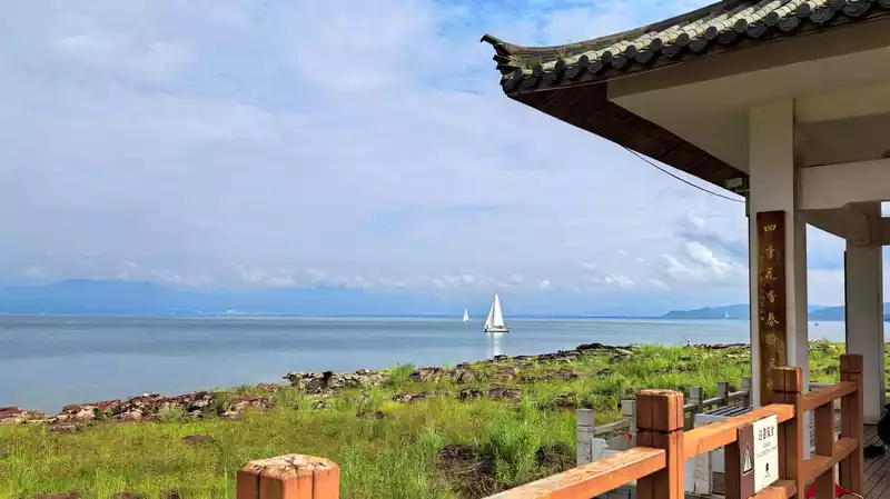 Xianhuwan is located in Haikou Town, Fuxian Lake. Strolling along the lakeside, you can see white sails in the lake and pavilions on the shore. Watching the lake water gently lapping against the rocks, it feels like time has slowed down here.