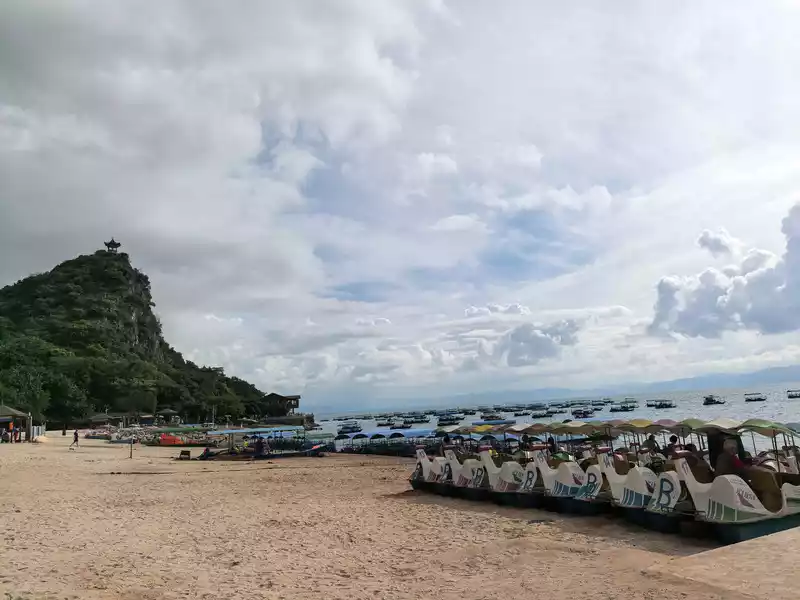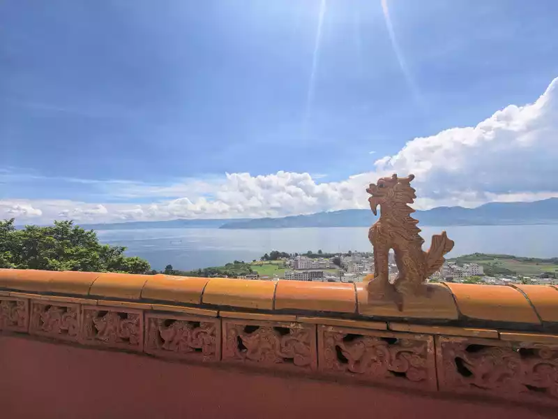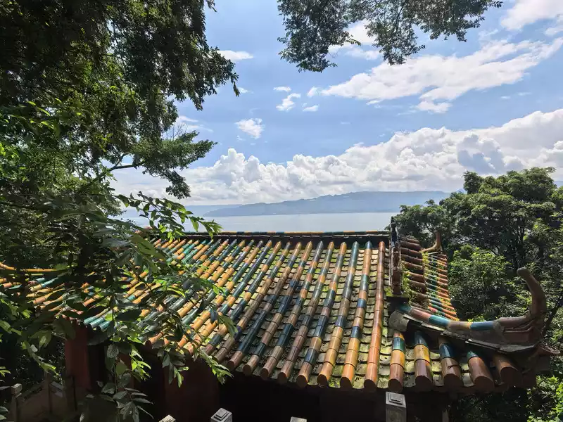 During our vacation at Fuxian Lake, we visited Luchong twice. It boasts a bay, a beach, a fishing cave, and Bijia Mountain. You can hike, play in the water, or just relax and enjoy the lake. Entrance to the Luchong Scenic Area requires a ticket, which costs 15 yuan per person without a discount. Parking is available inside the area. Bijia Mountain is not high, and there's a Guanyin Temple atop it, perfect for taking photos and checking in. Luchong Scenic Area3. #Biyun Temple Scenic Area