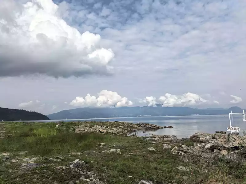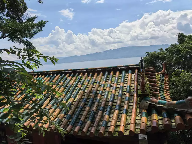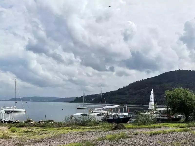 Fuxian Lake is located over 1,700 meters above sea level, making it a plateau. The daily temperature in August ranges from 10-25°C. Most days, we'd see blue skies, white clouds, and stunning views of the lake and mountains. However, there might be a sudden downpour, and then the sky would clear up, bringing a fresher air. The temperature was comfortable during the day, slightly cooler in the mornings and evenings.