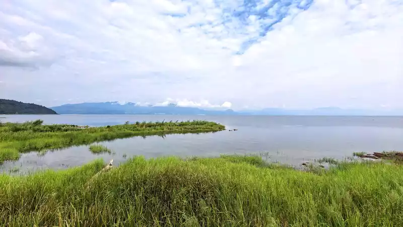 Gushan Island is the only island in Fuxian Lake, located approximately 800 meters offshore. It is said to boast a Ming and Qing architectural complex of eight halls, five pavilions, and three pavilions. Because some of us were seasick, we didn't land on the island; we simply admired it from the shore. The elephant grass along the shore was beautiful, and we took numerous photos. For lunch, we enjoyed Fuxian Lake stone pot fish and copper pot rice at a roadside restaurant.
