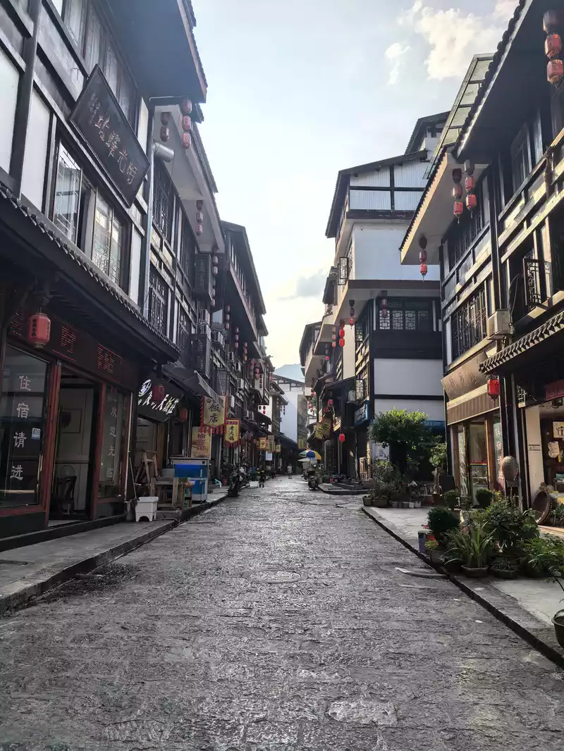 Five-foot rock steps lead from north to south, and Bai coffins hang on the wall of Shimen Gorge. The town has a cobblestone road. 2. Visit Zhaotong Ancient City on the way back On our way back from Fuxian Lake, we stopped in Zhaotong and stayed at the Yishan Hotel in Zhaotong. In the afternoon, we also went to #ZhaotongAncientCity. The ancient city felt unremarkable; it was chaotic and chaotic, with few legitimate businesses, just a few ten-yuan shops selling cheap goods. I had originally planned to have dinner in the old city, but couldn't find any restaurants, so I had to move elsewhere. I don't recommend visiting Zhaotong Ancient City. The next day, we departed Doushaguan at 9:00 AM and drove for six hours, arriving at our destination at 3:00 PM. We checked into the Yifan Boutique B&B in Xingkong Town on the shores of Fuxian Lake. After a short rest, it was almost 5:00 PM. We packed up and headed to a classmate's welcome dinner. After not seeing each other for years, we enjoyed a good chat and shared some useful information about Fuxian Lake. On the way back, a classmate invited us to watch the sunset on the cliffs of Starry Sky Town. It was here that we were amazed by the sunset glow of Fuxian Lake for the first time. After resting in the room for a while, I changed into pajamas and went to the balcony, where I was suddenly shocked by the bright moon again. I couldn't help but write down another short poem: ... From this gate, there is the Five-foot Road.