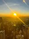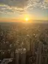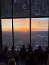 Arrived before sunset. Stayed after sunset. Viewed city, shore, pier, and lake before and after. Viewed sunset (sunset that night was NOT spectacular). Enjoyed drinks and nice seating. Reasonable seats for sunset. Don't buy THEIR photo. Take your own. We chose 360 Chicago over Sears/Willis Tower because seating at 360 facilitated a longer, more comfortable stay.