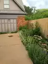 The garden out front has one flowering plant. It’s pink. Not really into gardening, but, for those who are, this place is lit. There are six steps. Sturdy and sound. They will need to be re-painted within three years, is my prediction. Handrails are 1st class and appear to be ADA compliant. From end to end the porch is 36 feet. That is exactly 11 and a half paces and normal walking rate. 41 toe-to-toe steps. The lone light fixture has a Sylvania 60 watt bulb in it. There is no mail in the decorative mailbox.