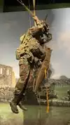 Very well done museum, with realistic displays and presentations. In the lobby are two paratroopers, the first being in a static line parachute and the second in a HALO or freefall parachute. Also the rotor hub from Super 61 that was shot down in Mogadishu Somalia in 1993.