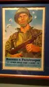 The main museum begins with the first formation of Airborne forces in the 1930s, and delves into the beginnings of WWII with propaganda posters and their importance, some of the early battles. Display from North Africa with Darby's Rangers and the Airborne forces that flew from England to jump into Algeria in Americas first combat parachute operation.