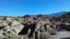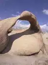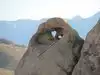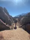 Hills that have decomposed into wild boulders, loaves, spires and mesmerizing shapes, most viewable from the car. Hikes are short and have a high return on investment. Getting the free Alabama Hills map at the visitor center on the S side of Lone Pine on Rt 395 is worth it because the multitude of side roads are not labeled. The roads are not paved, but they are in good shape. If you go on a walkabout, wear sunscreen, sensible shoes and a wet bandana if it is between 10 AM and 4 PM because it is HOT. From the road to Whitney Portal, turn right onto Movie Road.