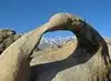 the trail to Mobius Arch is an easy walk that offers a splendid view on the Alabama hills with the towering sierra and Mount Whitney on the back. Don't hesitate to get lost in the boulders and explore further the deserted area of the the Alabama Hills. There are a lot of tracks and you can't get totally lost. Bring water, lot of. Get there early on hot days. You might see hares, too.