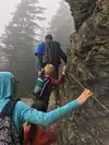 I thought I would only make it to the cave or the bluffs (half way up) but I made it all the way to the top of LeConte. I really thought it might just be a bit too scary and a bit too long. I run a lot, but don't have so much opportunity to hike, so leading up to the hike day for a couple weeks, I increased my running mileage so I was running 5-8 miles 3 times a week. In retrospect, I should have run more hills to prepare. I made it ok, in about 2.5 hours on the way up. I just would have liked to be less winded. Additionally, I was concerned about the drop I had read about, and the cables you can hold. I do have a good respect for heights, not an all out fear - and I did fine with that. I attached a couple pictures so you get the idea of the more scary sections of the 2nd half of the trail. Know that any scary section is pretty short, maybe 10-20 feet or so and what is nice is most sections even though there is a big drop off right next to the trail, there is often vegetation growing from way down yonder up to you, so it gives you some sense something is next to you which for me was very calming. If you are from a place with mountains you would likely not be as intimidated as I. I would definitely do this hike again, as long as it was not raining. I don't think I would enjoy any added slippery conditions. When we got up to the top, I was envious of all those who were lucky enough to stay overnight on that beautiful end of July night. It would surely be a moment to remember. We saw all sorts of abilities on the trail, many even older than I, and many with legit hiking sticks, but just as many that looked of average ability wearing tennis shoes instead of hiking boots, so you will surely see all levels heading up there even on the 2nd half of the trail. When we got to the top a fog had rolled in and spoiled our view, but I would still have done it anyway, the views along the way were just that pretty. Loved the level section at the very top, with all the evergreen scent, super pretty. On our day I understand it was one of the busiest days of the summer. We were rarely totally alone, and we definitely could not have stopped to take a pee break without being seen, it is just too hard to get off the trail in most spots as the thicket is somewhat impassible. So, I drank a lot of water and had to wait to the top to use the restroom up there, but it was alright. The walk down was easy, occasionally had to wait for uphill traffic. My advice, start before 9 a.m. if you want a decent parking spot at trail head and a little less foot traffic on the hill. If I did it, you can too. Spent 6 hours on the trail, then got in our cars and saw a bear, great finish to the day! Even if you only make it to the half way point, this is a gorgeous trail to hike.