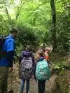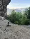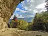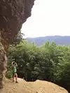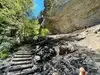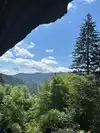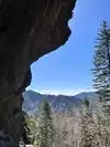 The trail runs along a beautiful creek. The heavy rain before we went led to some awesome pics of the kids sitting on branches over the rushing water. As you neared the cave, there were amazing views of the mountains and valley in between. The cave wasn't really a cave, but was an interesting rock formation that was worth seeing. Very glad we did it!