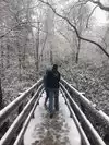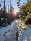 It starts off easy enough along the creek. As we made our along the path, it was more of a stroll than a hike for about 1/2 mile. It then started to get steeper and the snow started to appear. There were a number of small bridges that criss-crossed the creek. About a mile into the hike and as we approached another bridge, Arch Rock came into view. The stairs made of rock go through the arch.
