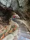 It is actually a very large outcropping of rock and not technically a cave but impressive nonetheless. We enjoyed the rest before starting a treacherous return down the mountain. Interestingly, it was not just the ice that was the issue but rather as temperature rose, the path became very muddy and more slippery. Going down on ice and mud made for slow progress plus the number of hikers coming up grew many times.