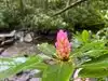 The flatter early stages of the trail benefit from the beautiful rushing creek, and dense rhododendrons. Eventually, you will ascend out of those. We saw no litter anywhere on this trail. While there isn't much signage on the trail itself, the path is extremely obvious--almost no chance for a wrong turn or to get lost.