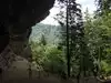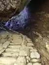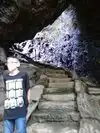 The hike to the cave was about 5 miles round trip, with most at a steady upward pace. There's several logs to cross streams, a staircase cut into & through a rock, and finally a huge stone overhang. Extremely scenic hike.