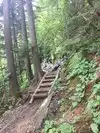 IMO best trail to get to the lodge. Not terribly strenuous. Trail levels out some after assents so one can have a breather. Some places trail is on bald spots use the hand holds.