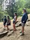We were looking for a reasonable length hike that our entire group of 12 ranging in age from 10 to 55 could handle. This hike was perfect and we all loved it. It has interesting features -- passes by the beautiful Alum Cave Creek which has some nice rocks for some great picture taking, Arch Rock and then finally Alum Cave Bluffs. Arch rock is about 1 mile from the start and has a flat log river crossing with wood hand rail and then built in stairs to go through the narrow tunnel of the arch. There is a "hand rail" made from a cable along the stairs to assist with going up the steps. None of this was steep or scary. You then continue to Alum Cave Bluffs which is 2.3 miles from the start (so an additional 1.3 miles). When you get up to the bluff, you're rewarded with some nice views and a cool spot to take a break, eat a snack, and take some great pictures. If you decide to continue to Mount LeConte, it is another 5 miles one way. There is a decent-sized parking lot at the trailhead but it is always a good idea to go early in the summer / touristy months as it is typically overflowing due to the trail being a favorite for overnight stayers at the LeConte Lodge (which is an actual paid lodge with meal service -- can only get in by lottery due to demand and they have to pack all the supplies in via llamas). If the parking lot is full, most people just start parking along the road. It late June it was in the low 50's when we started, so all the women on the hike wore lightweight jackets -- which we of course removed as we got heated up. With the additional exploring my GPS read 4.9 miles and ~2.5 hours by the time we got back to the parking lot (some in our group stopped to take lots of pictures). Since this was such a short hike and relatively close to Clingman's Dome (only another 12 miles away), we went there afterwards which probably added another 2 miles of walking to our day (we had to park on the side of the road, fairly far from the trail head due to the congested parking lot). If you really want to see Clingman's Dome this is a great option. Our group was not blown away by the Dome and said it definitely is not a "must do". Overall, we really enjoyed the Alum Cave hike and rank it up there with Ramsey Cascade and Charlies Bunion.