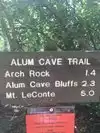 To Alum Cave Bluff: 2.3 miles one way, 1136 feet of elevation