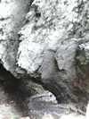 About 3/4ths to Alum Cave, there is a great view of Mt. LaConte and around the bend a view of the Eye of he Needle but you have to know where to look or you will miss it. We finally got to a narrow section that offered a cable handrail which was welcomed due to the ice that lead to the last steep set of stairs the “cave”.
