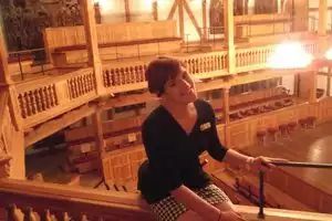 This is a beautiful indoor theater, full of wood and light. The Company was friendly and energetic. We watched "A Comedy of Errors" and were totally amazed at the skill, athletics, excitement, and performance as a whole (how do they keep up with the blocking?????). We watched from the seats on the stage, a fantastic and unique view of the play. As if a riot of a show was not enough, the Company played music on stage before the show and during intermission, then 4 of them stayed after for a Q&A!! The only downside was that we couldn't hear music vocals quite as well from our seats on up-stage stage right, but we would gladly do it again.