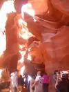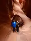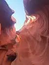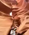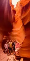 Beautiful experience entering this sandstone rock site along a tunnel carved by the waters as if it were painted by a great sculptor in Arizona. Great wonder of the nature of the orange-pink color you can admire the curious rocky shapes with the light penetrating from above creating beautiful shades, very good our local guide who plays a personal flute inside that gives more sense to our visit.