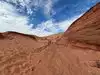 Just outside Page the Lower Antelope is something you can't miss. The walk takes 1.15 h approx. You travel in groups of 20 people accompanied by a Navajo Guide who in our case is very kind and full of information. The colors, passages and formations of the ground create unforgettable plays of light. Contraindications. Not suitable for those suffering from claustrophobia, those with mobility difficulties, you can not carry backpacks, baby carriers, bags and purses. Only cell phone, camera and water. Indians are mandatory.