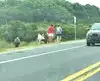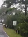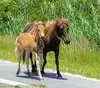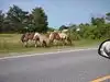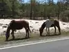 Four adults and we immediately came upon three ponies on the side of the road. I U-turned and stopped right beside them. Big mistake. A wildlife officer in a white SUV saw the whole thing and stopped in front of us, blue and red lights flashing. A really good guy, a true professional and he warned us of a $300.00 fine. We had not seen the "they bite, they kick and stay 40 feet away" sign(s). One of the ponies stuck his head through the passenger window and as we petted his nose, the wildlife officer responded. Two veterans in our group and we understand and obey rules and regulations. We simply missed the sign and we all appreciated the officer's response.