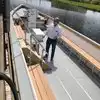 We walked up to the trail path and watched as the automated machine opened the gate to let more water through It's metal arm was just inches from the power line above it!
