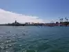 Very large marina on one side of the strip and beach the other. Lots of restaurants and bars to chose from. Laid back feel to it.