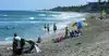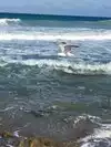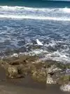 What a beautiful beach. Dark turquoise water, more gentle waves (swells) than some other beaches, and a terrific flock of pelicans diving over and over to catch fish. People swam here and dmall ones played in the surf. A few folks were scuba diving for what looked like shellfish. Beach itself is a bit of a slope which we like- made for comfortable napping. Bathrooms amd decent parking. We will definitely go again!
