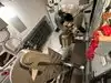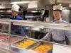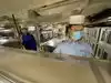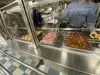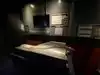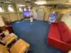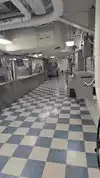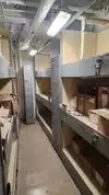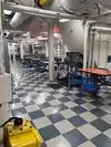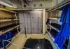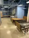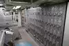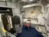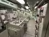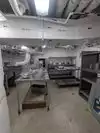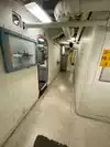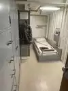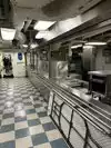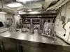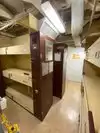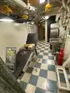 The team had triple bunk beds, locker walls, a shower and toilet area and two huge kitchens in several rooms. During the main meal period (which was only one hour long), up to 2,600 sailors were fed here. There was only a sparsely furnished lounge with tables for four that could accommodate perhaps 150 people.