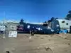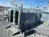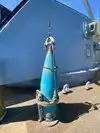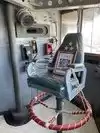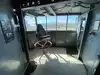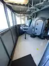 A toilet truck is in front of the ship, usable and clean.