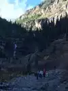 Manageable hike a few yards from the northern border of town. About a 2 and 1/2 mile steady climb of moderate severity along a broad dirt path littered with rocks. Destination is the Bear Creek Falls which arise majestically from a plateau near the peak. Surrounding mountain peaks and grassy meadows are breathtaking. Early morning appears to be the best time. Path gets a little crowded nearing lunchtime.