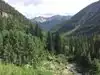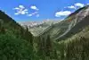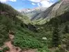 Bear Creek Falls trail starts on the south side of Telluride and climbs up into a side canyon on its way to the falls. While the trail is moderately steep, it is not so steep as to require switchbacks and is wide enough to walk abreast, pass people. You can still see where an avalanche took out a large area of trees several years ago, enjoy the sounds of nature and the stream while you take a leisurely hike.