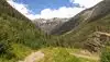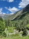 This was an OK hike. We are not hikers. Lots of people along the road that takes you up to the falls. Not much of a fall, but nice enough. Beautiful mountains surround you. Trail is rocky and wide.