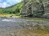 This area is very scenic but very crowded especially on weekends or holidays. Fishing is not very good because of limited access to the river unless you are a fly fisherman with waders and non-slip boots.