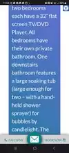 Visited Oklahoma cabins through Beaver Bend Adventures and rented Heavenly Ridge Cabin which was a 3 bedroom 3 bath and described as 2 Downstairs with a soaker tub (as pictured, but was now a shower), but needless to say it wasn't as described and the management team was unresponsive and uncaring. We needed the soaker tub for relaxation. The hot tub didn't work although it was reported to management. Just warning don't waste your money or time with this company. I have pictures of the discrepancy and just sad customer service is horrible. As an educator I work to hard to not give my family what was described on the website. Again beaware! Just be empathetic to the issue or put us in another cabin or some type of compensation.