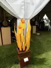 The second weekend in August the Benson Park Sculpture Garden is transformed into the biggest, best run sculpture display and sale in North America. Four tents full of artist displaying their sculptures, a fifth tent with a silent auction and a sixth tent with replicas of many of the sculptures on permanent display in the park. Sculptures seemed to range in price from $500 to $25,000 from whimsical to monumental. Tickets were $7, but there were lots of free tickets as well for those of us on a special mailing list. Great show to plan for. We took the shuttle bus to avoid the crush at the park and it worked quite well. Food court was quite well done with lots of shady seating.