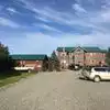 There is a parking lot.