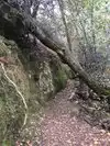 As the park heads further east out of town, it becomes Upper Bidwell Park, which becomes ever wider and increasingly rugged, again focused on the wooded riparian area of the creek, but with a rugged, rocky gorge and rock outcroppings. It includes more swimming areas and numerous trails along the creek, on the top of the ridges and cliffs, and up to, and on top of, an outcropping of rock known as the Monkey Face because of its resemblance to a face of a monkey or ape. It offers a variety of natural areas and different types and levels of hiking and is one of the jewels of the region. Maps of the park are available in the park, online, and at hotels and other places in town.