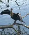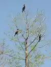 Alligators sunning/swimming, gar fish, great blue heron, snowy egret, palm warbler, double-crested cormorants in the trees. Very peaceful.