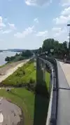 A short, pretty drive from downtown along the river. The pedestrian bridge is nearly a mile walk across the river. Good view of the dam and lock from the 90 foot high bridge. Nice and quiet since it is a pedestrian bridge without an adjacent road.