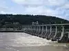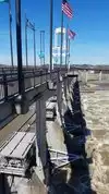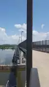 This is a bridge that is expansive and goes across the river to an island. There is plenty of free parking and portable bathrooms. It is a bit of a walk so if you have a walking disability I would not recommend it. However it is wheel chair accessible. You can see a lot of stuff from the bridge.