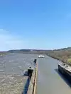 I had a beautiful sunny day to walk this attraction and it was gorgeous. The parking lots seems to have enough space for everyone. The walkway is nicely paved, it's not too steep going up or down. There is a lock system for barges here as well, and that's nice to watch from above. They have several resting places along the way. There is a caged area above the barge which gave off a strobe light effect as I walked through it on the sunny day and was a bit nauseating. The bathroom areas are port-a-potties, permanent bathrooms would be a great improvement. They obviously meant for people to park and walk/bike the bridge and associated trails and port-a-potties are just nasty.