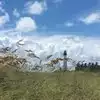The green vegetation is surprisingly varied with vivid red or yellow flowers.