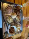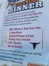 The chuck wagon meal was pretty dang good. Huge chicken drum or thigh, fall off the bone baby back ribs, awesome BBQ sauce and sides. Another surprise was they make the best drinks in town.