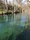 Now a city park. There's an admission fee during the summer, when swimming is allowed, but it's free most of the year. Beautiful, clear water under the cypress tress with a large green, grassy area for lounging.