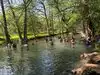Great time swimming at Blue Hole! Our party ranged in ages from preschoolers to teens to adults- everyone had a fun time at the Blue Hole! The water was beautiful, though cold, and shaded by a cypress tree canopy. There was a shallow area where little ones could stand. Deeper sections to float in tubes or do the rope swings. Park reservation max did not make it feel too crowded- families stayed in their own groups. Recommend for a picturesque Blanco River swimming spot!