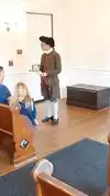 I also wanted to mention there was another actor outside after the tea toss who assisted the back of group when several kids, older kids who knew better, had their backs turned to our guide and his presentation and were horsing around and talking loudly- with one of their adults. I got annoyed and shooshed them several times, but this actor walked over and politely insisted they return their quiet attention to the tour. I thanked her as we left that area:)