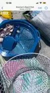 We went at low tide and were told since there hasn’t been a storm recently that the shells would not be that great. It was fun but next time would get the baskets on a stick to dig around out at the breaks and would also get goggles since we were told today that it’s best to go in the water and feel with your feet for the bigger shells!