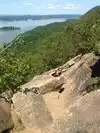 I hiked up here recently on a warm summer day, and really enjoyed the experience. Near the start you need to be prepared to scramble up over the rocks, as you climb about 1000ft over a distance of less than a mile. But the climb is still easy enough such that it's immensely popular (I wouldn't recommend this for small children however). On a sunny weekend day, not only will the parking lots fill up quickly, but both sides of the road will be filled with parked cars (try to arrive by 8:00 AM to avoid some of the crowds!). You can get a good description of this hike from the "hikethehudsonvalley" web site, but also there was a small station set up at the trail head, where staffers were on hand to provide trail maps and answer questions. We extended the basic loop by continuing on the blue/white trails over to the yellow trail, and then back over Sugarloaf along the yellow trail to 9D (about 6-6.5 miles total distance). Overall, a really nice hike! (One warning: be very careful when walking along 9D. The parked cars don't leave much room for pedestrians, and the traffic may be moving very quickly).